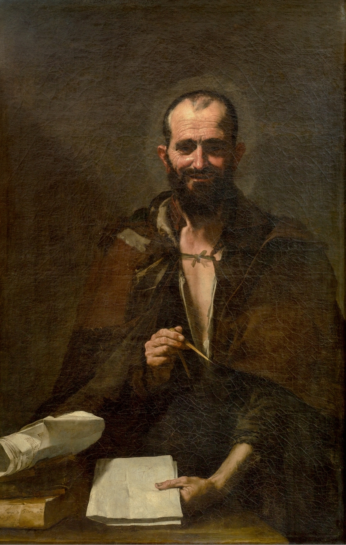 Una de las características que definen el estilo de Ribera es su realismo inquebrantable. Retrató a sus personajes, a menudo personas comunes interpretadas en roles religiosos o mitológicos, con todas sus imperfecciones: arrugas, piel curtida y signos de adversidad. Este rechazo a la belleza idealizada, sello distintivo del caravaggismo, permitió a Ribera imbuir sus figuras de una poderosa sensación de humanidad y autenticidad. Sus representaciones de santos y filósofos ancianos, como sus numerosas versiones de San Jerónimo y Arquímedes, son particularmente convincentes por su representación de la sabiduría grabada en las líneas de sus rostros y la intensidad de su mirada.